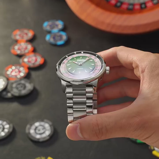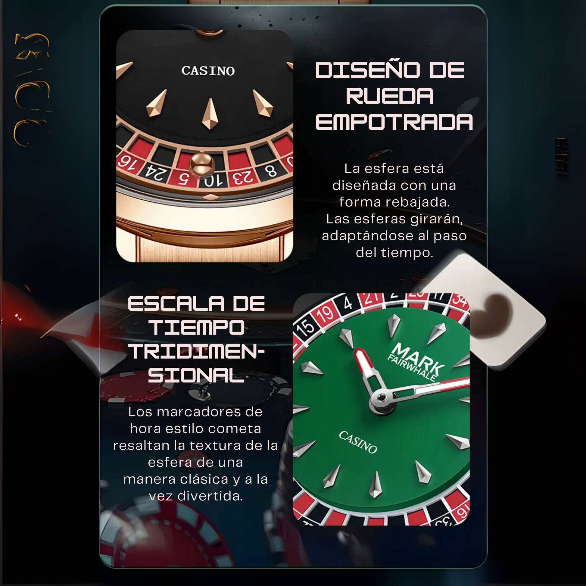 Un reloj que trasciende la hora para convertirse en experiencia. Te invita a compartir momentos únicos y a disfrutar del placer de apostar a lo inesperado, ya sea en soledad o acompañado. Convierte cada instante en una apuesta ganadora